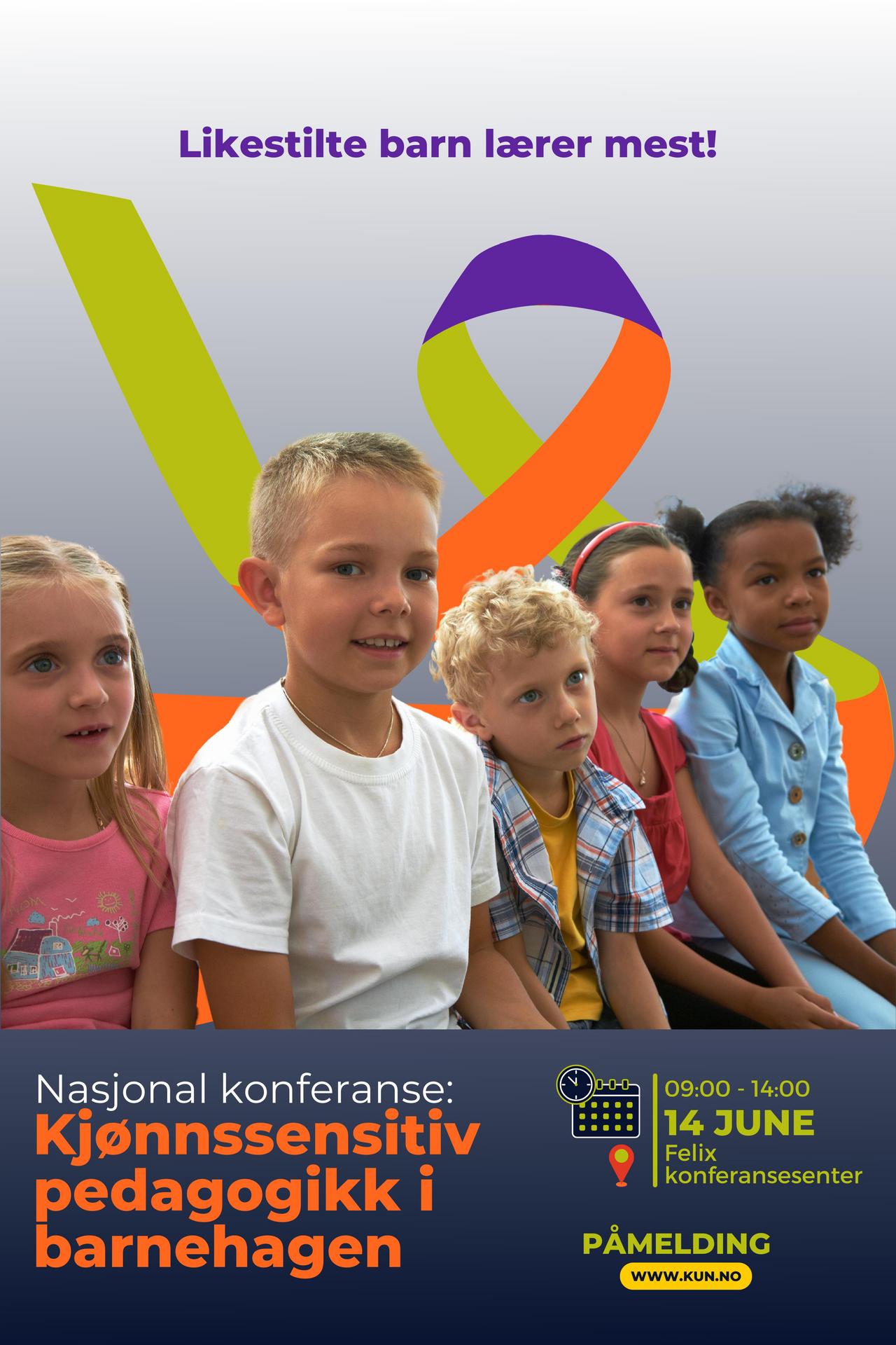 Likestilte barn lærer mest! – en nasjonal konferanse om kjønnssensitiv pedagogikk i barnehagen Denne konferansen er for deg som jobber i barnehage, er barnehagekoordinator i kommunen, jobber med utforming av rammeverk og opplæringsmateriale til barnehager, er forelder til et barn i barnehage eller generelt er interessert i at barn skal få en likestilt oppvekst.