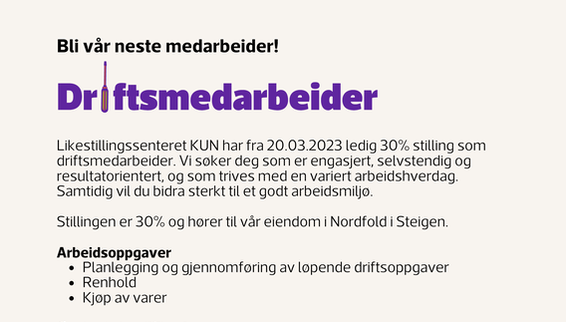 Likestillingssenteret KUN har ledig stilling som seniorrådgiver/rådgiver i 100%.