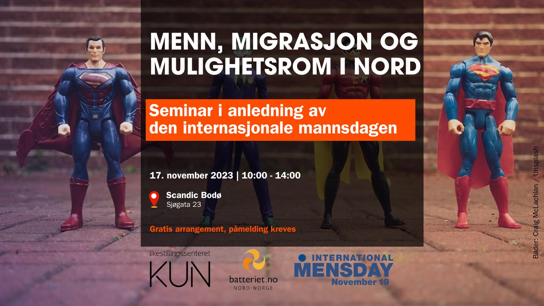 Velkommen til feiringen av den internasjonale mannsdagen i Tromsø. Menn deltar i mindre grad i sosiale felleskap enn kvinner, og særlig gjelder dette for menn med minoritetsbakgrunn. Er det noen slike felleskap vi savner, som burde opprettes? Vi inviterer deg som er interessert i tematikker knyttet til vold, psykisk og fysisk helse, samt minoriteter, til et inspirerende lunsjseminar i anledning mannsdagen.
